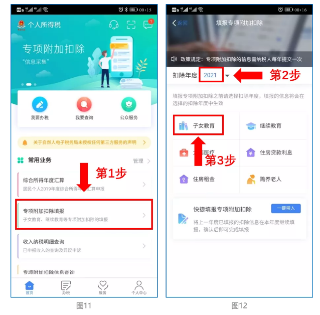 直接选择首页的“专项附加扣除填报”。如上图11、图12。